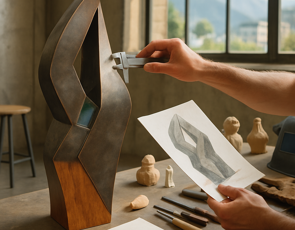 Wir kombinieren klassische Techniken wie Bronze‑Guss, Schmieden und Holzschnitzerei mit digitalen Methoden: 3D‑Modellierung, CNC‑Fräsen und selektiver 3D‑Druck. Das erlaubt präzise Formen und reduziert Iterationskosten. Gleichzeitig bewahren wir die Unregelmäßigkeiten, die einer Skulptur Charakter verleihen. Perfektion ist nicht immer das Ziel — Persönlichkeit schon.